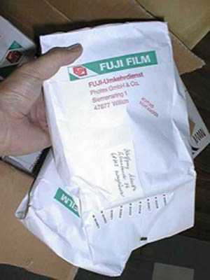 外国からも現像の依頼は多い。この日はたまたまドイツのレトロ通販のお客さん、シュルツさんのフィルムが届いていた。